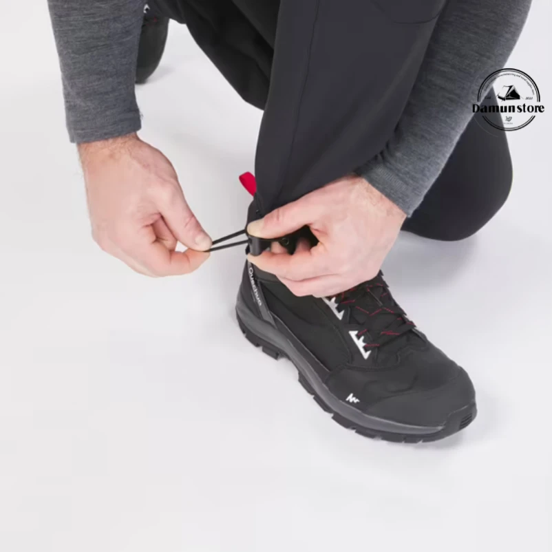 انعطافپذیری بالا یکی از ویژگیهای مهم این شلوار است. زانوهای قالبگیری شده و پارچه کشسان، آزادی حرکت کامل را فراهم میکنند و مانع محدودیت حرکتی در مسیرهای شیبدار یا ناهموار میشوند. این طراحی باعث میشود که شلوار مناسب فعالیتهایی مانند پیادهروی زمستانی، کوهنوردی، کمپینگ و حتی استفاده روزمره در هوای سرد باشد. سیستم کش و قلاب اتصال روی پایه شلوار نیز به شما امکان میدهد آن را به بند کفش متصل کنید و از ورود برف به داخل جلوگیری نمایید، ویژگیای که در پیستهای برفی و مسیرهای برفی اهمیت زیادی دارد.