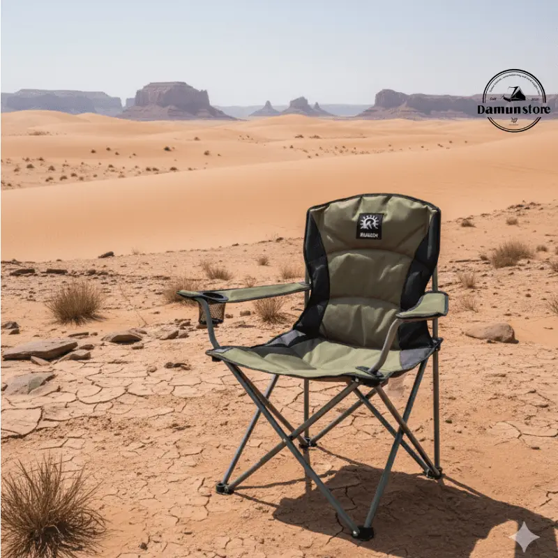 در قسمت نشیمن و پشتی از پارچه مقاوم و بادوام استفاده شده که ضمن لطافت و تهویه مناسب، مقاومت بسیار بالایی در برابر پارگی و سایش دارد. طراحی ارگونومیک صندلی باعث میشود ستون فقرات در وضعیت طبیعی خود قرار گیرد و استفادهی طولانیمدت در سفر یا طبیعت هیچگونه خستگی ایجاد نکند. ابعاد استاندارد نشیمن (۴۴ × ۳۲ سانتیمتر) و ارتفاع مناسب از سطح زمین (۴۰ سانتیمتر) باعث تعادل و راحتی کامل هنگام نشستن میشود.