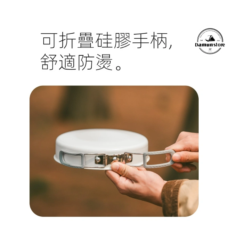 یکی از ویژگیهای جذاب این مدل، دسته تاشو با قفل ایمنی است. این طراحی باعث میشود هنگام حمل در کولهپشتی، فضای بسیار کمی اشغال کند و در عین حال هنگام استفاده، کاملاً پایدار و ایمن باشد. دسته از جنس فولاد ضدزنگ ساخته شده و روکش نسوز آن مانع از انتقال حرارت به دست میشود؛ چیزی که هنگام آشپزی در محیطهای باز، اهمیت زیادی دارد.