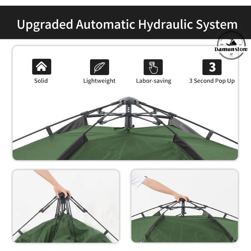 یکی از برجستهترین ویژگیهای این چادر، سیستم اتوماتیک باز و بسته شدن آن است. کافی است چند حرکت ساده انجام دهید تا در کمتر از چند دقیقه چادری کامل و پایدار داشته باشید. این ویژگی مخصوصاً برای سفرهای کوتاه یا زمانی که شرایط جوی مساعد نیست، بسیار ارزشمند است؛ چراکه شما بدون اتلاف وقت میتوانید سرپناه خود را آماده کنید.