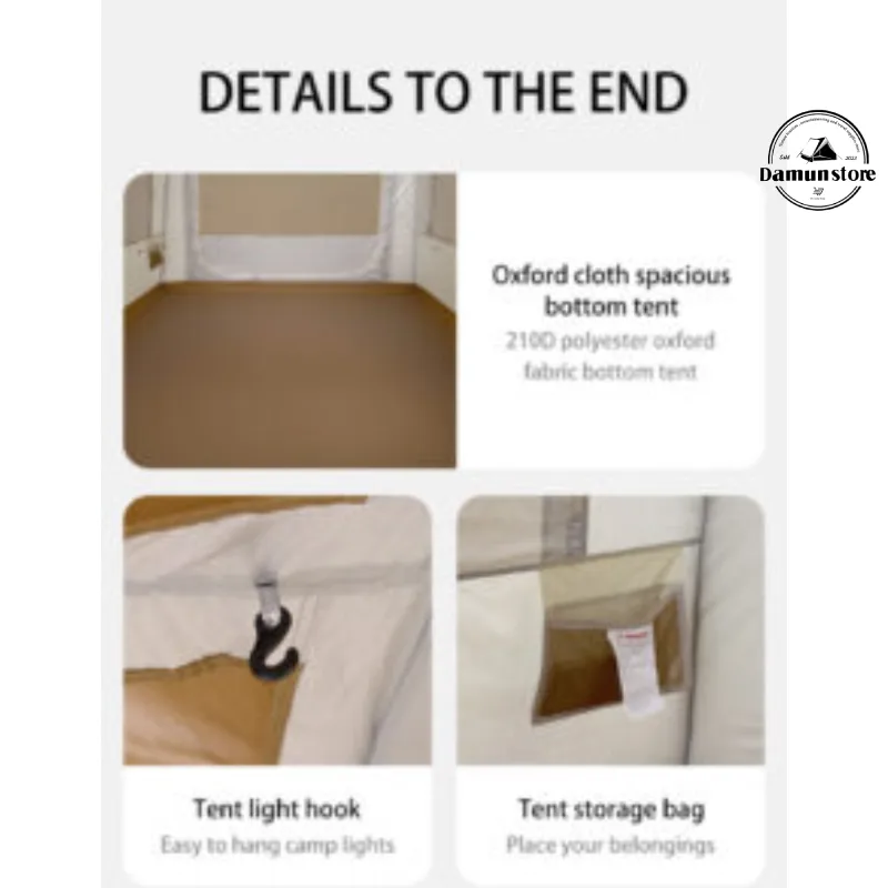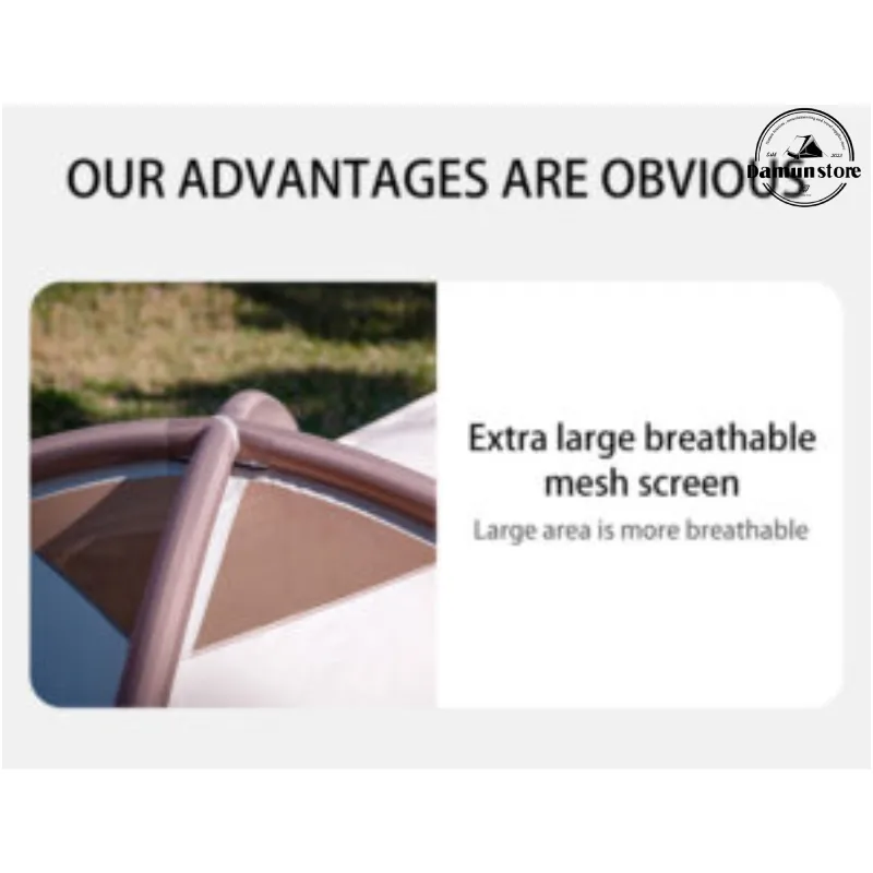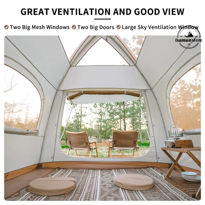 چادر Ango با طراحی سه فصله تکلایه، ترکیبی از راحتی و کارایی را ارائه میدهد و تهویه عالی آن، با پنجرههای توری در پنج طرف، جریان هوا را به بهترین شکل ممکن برقرار میکند. این طراحی باعث میشود هوای داخل چادر تازه و بدون رطوبت یا بخار باشد، حتی در روزهای گرم تابستان. ارتفاع داخلی ۱.۷۰ متر فضای کافی برای ایستادن و حرکت راحت را فراهم میکند و با طراحی فضای جلویی ۱.۵ متری، محیطی مناسب برای استراحت، بازی یا نگهداری وسایل کمپینگ ایجاد میشود.