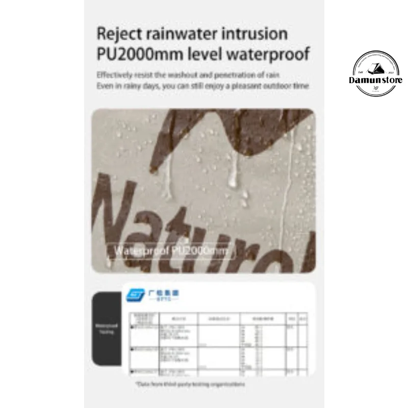 جنس پارچه چادر از آکسفورد ۱۵۰D با روکش نقرهای ساخته شده که علاوه بر مقاومت بالا، محافظت کامل در برابر نور خورشید را فراهم میکند. شاخص UPF50+ این پارچه، مانع نفوذ اشعههای مضر UV-A و UV-B شده و از آسیب به پوست جلوگیری میکند. کف چادر از پلیاستر ۲۱۰D با ریت آب ۳۰۰۰mm طراحی شده و پارچه اصلی با ریت ۲۰۰۰mm در برابر بارش باران مقاوم است؛ بنابراین Ango در شرایط مختلف جوی قابل اعتماد است.