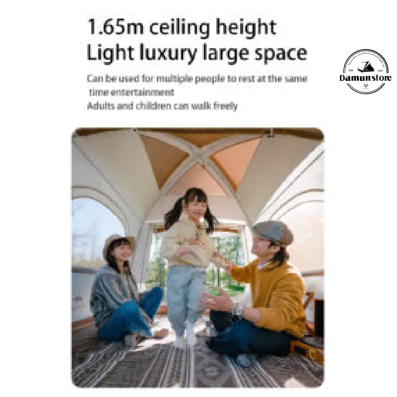 ابعاد باز شده ۲۱۰ × ۲۱۰ × ۱۷۰ سانتیمتر، ظرفیت کافی برای ۳ تا ۴ نفر را فراهم میکند و وزن ۶.۵ کیلوگرمی آن، حمل و جابجایی راحت را تضمین میکند. چادر به راحتی در کیسه حمل خود جای میگیرد و گزینهای ایدهآل برای سفرهای طبیعتگردی، کمپینگ خانوادگی، سفرهای آفرود و ماجراجوییهای کوتاه مدت است.