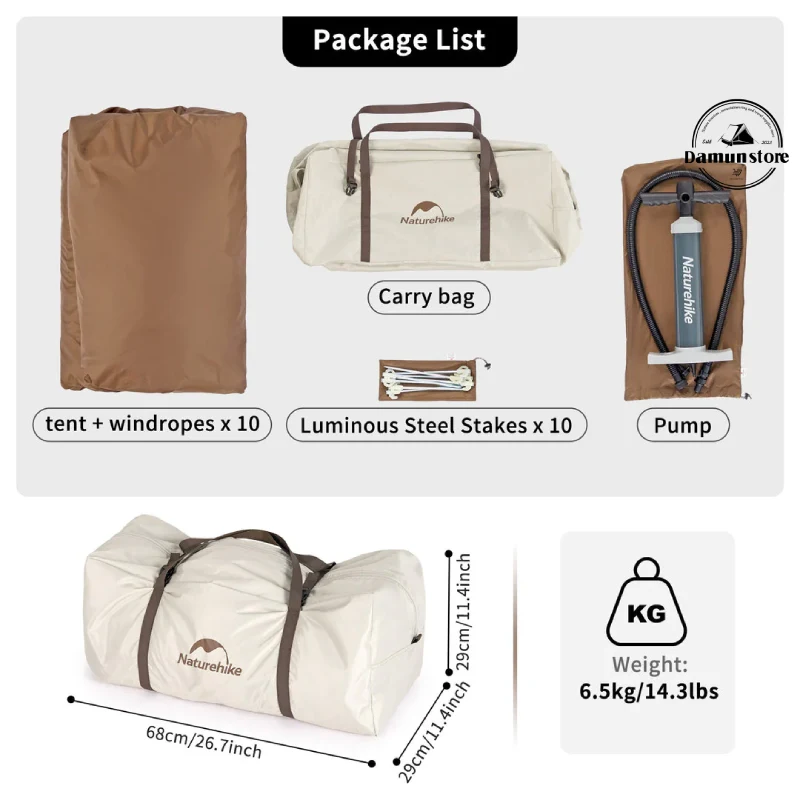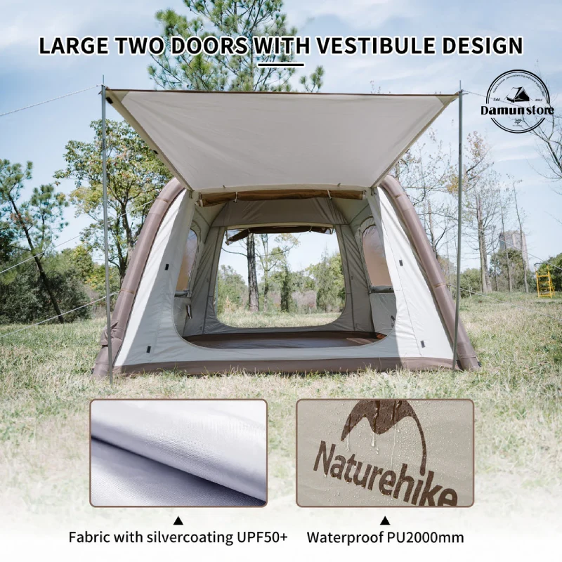 چادر کمپینگ بادی نیچرهایک ۳ به ۴ نفره – انگو Naturehike Ango Air Inflatable Tent، یک انتخاب حرفهای و مدرن برای علاقهمندان به کمپینگ، طبیعتگردی و سفرهای آفرود است. طراحی بادی یکپارچه این چادر، نصب آن را به سادگی قابل انجام کرده و در کمتر از ۶۰ ثانیه آماده استفاده میشود؛ این ویژگی باعث میشود حتی کودکان بتوانند در راهاندازی کمک کنند و تجربهای سرگرمکننده برای خانوادهها ایجاد شود. این سیستم خودنگهدار، ثبات بالای چادر را تضمین کرده و نیازی به تیرکهای سنتی یا مهارتهای خاص ندارد.