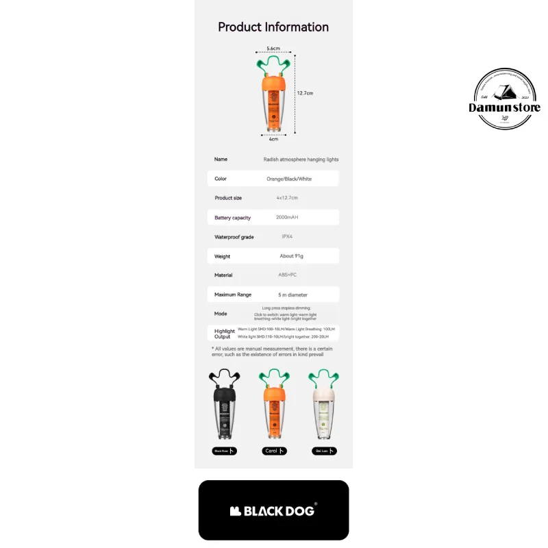 ترکیب امکانات حرفهای، طراحی زیبا و کاربری بسیار آسان باعث شده BLACK DOG CBD2450ZM014 یکی از بهترین چراغهای کمپینگ برای سفر، طبیعتگردی، کوه، آفرود و چادر باشد. اگر به دنبال چراغی هستید که هم کوچک باشد، هم نور قدرتمند بدهد و هم در شرایط سخت همراهی قابلاعتماد برای شما باشد، این مدل دقیقاً همان چیزی است که نیاز دارید.