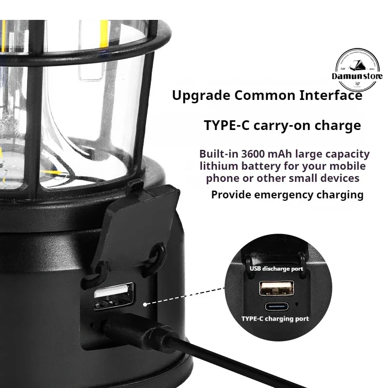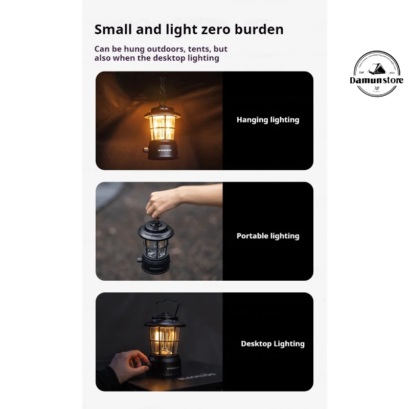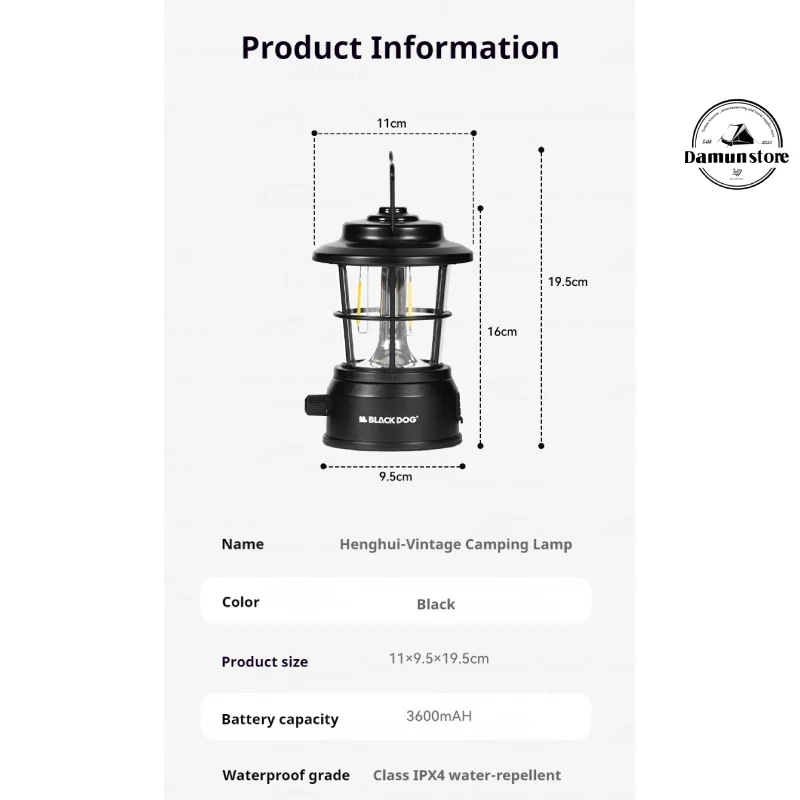 بدنه چراغ از PC و ABS مقاوم ساخته شده که دوام بالایی در برابر ضربه و شرایط محیطی فراهم میکند. طراحی مینیمال و جمعوجور آن، علاوه بر زیبایی، استفاده راحت در فضای باز را ممکن میسازد. مقاومت در برابر آب با استاندارد IPX4 این امکان را فراهم میکند که فانوس در شرایط بارانی یا محیطهای مرطوب نیز بهطور ایمن روشن باقی بماند، بدون خطر آسیب به باتری یا مدار داخلی.