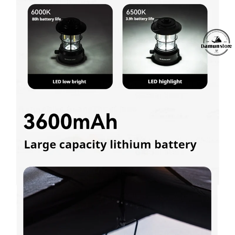 این فانوس دارای باتری ۳۶۰۰ میلیآمپر ساعت است که میتواند با روشنایی کمنور فیلامنت تا ۱۷۰ ساعت، با روشنایی پرنور فیلامنت تا ۶.۵ ساعت، با روشنایی کمنور LED تا ۸۰ ساعت و با روشنایی پرنور LED تا ۳.۹ ساعت روشن بماند. این تنوع حالتهای روشنایی، انعطافپذیری بالا در کمپینگ، کوهنوردی شبانه، پیکنیک و شرایط اضطراری را به کاربر ارائه میدهد.