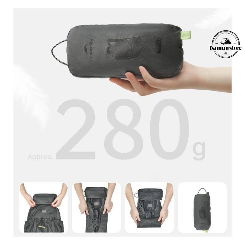 وزن این کوله تنها 280 گرم است؛ به همین دلیل میتوانید آن را همیشه همراه داشته باشید، بدون اینکه بار اضافی به وسایل سفر شما تحمیل کند. قابلیت تاشو بودن، یکی از ویژگیهای اصلی این مدل است. شما میتوانید کوله را بهراحتی جمع کرده و در اندازهای بسیار کوچک درون کیف یا چمدان قرار دهید. این ویژگی بهویژه برای سفرهای طولانی یا زمانی که به فضای اضافی نیاز دارید، بسیار ارزشمند است.