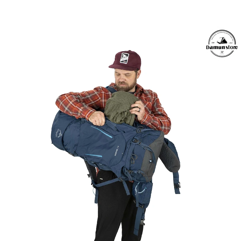 یکی از ویژگیهای کاربردی این مدل، داشتن محفظه جداگانه مخصوص کیسه خواب است که با یک دیواره پارچهای داخلی از دیگر بخشها جدا شده و با تسمههای قابلتنظیم مهار میشود. این ویژگی سرعت دسترسی به کیسه خواب را بسیار افزایش میدهد. همچنین زیپ کناری بزرگ امکان دسترسی سریع به محفظه اصلی را بدون نیاز به باز کردن درب بالا فراهم میکند. این برای طبیعتگردانی که در مسیر نیاز به دسترسی به لباس گرم یا تجهیزات دارند، یک مزیت بسیار مهم است.