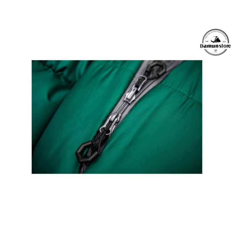 یکی از ویژگی‌های خاص این مدل، زیپ YKK دوطرفه است که کیفیت و دوام بالایی داشته و به کاربر اجازه می‌دهد از داخل یا بیرون، کیسه خواب را باز و بسته کند. چندلایه محافظ تعبیه‌شده در اطراف زیپ، از خروج گرما جلوگیری کرده و مانع گیر کردن زیپ در پارچه می‌شود. این جزئیات کوچک اما مهم، تجربه‌ای بدون دردسر و بسیار کاربردی برای شما فراهم می‌کنند.